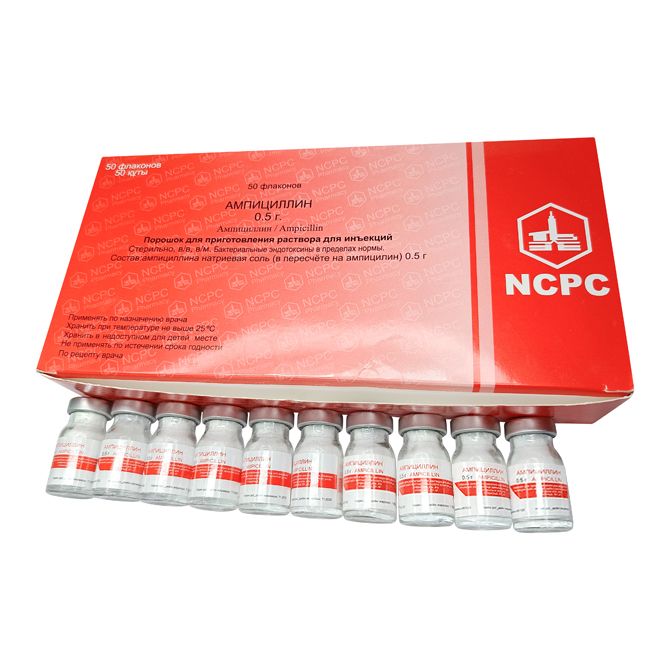 Ампициллин ампулы 0.5г (500 мг) №10 (10 ампул)